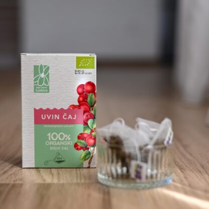 Organski čaj od Uve ursi ili medvjetke pakiran u piramidalnoj vrećici od prirodnih materijala. Sve do otkrića raznovrsnih antibiotika Uvin čaj se koristio za liječenje različitih infekcija. Poznato je da uvin čaj sadrži Hidrokinon, spoj koji je veoma koristan u liječenju infekcija mokračnog sustava kao što su nefritis, uretritis, cistitis i sl.